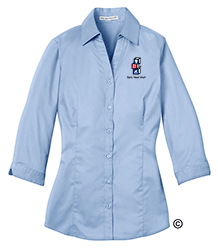 Ladies 3/4 Sleeve open neck blue blouse with embroidered Early Head Start Blocks logo