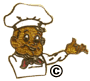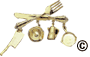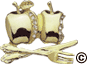 Apple, Fork, Knife with Rhinestones Gold Brooch