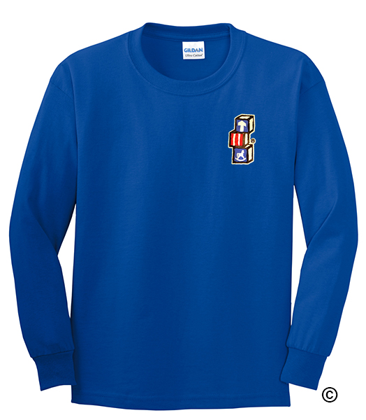 Please allow 2-3 weeks production on wearables and tote bags. Please contact us for rush deadlines. EHS16LS Early Head Start royal blue long sleeve 100% cotton t-shirt with Early Head Start Blocks logo on the front and a full color picture with SUPPORT EARLY HEAD START on the back. Click to return to : Early Head Start Wearables