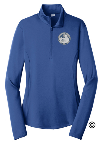Please allow 2-3 weeks production on wearables and tote bags. Please contact us for rush deadlines. JJSHL357TR This lightweight true royal ladies pullover locks in color and wicks moisture. It’s versatile enough for year-round wear. Embroidered with silver round Jack and Jill logo