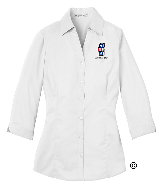 Please allow 2-3 weeks production on wearables and tote bags. Please contact us for rush deadlines. EHS0926W With a modern fit, this wrinkle-resistant blouse is a must-have basic-pair it with skirts, jeans or khakis. Please note it is a FITTED blouse.